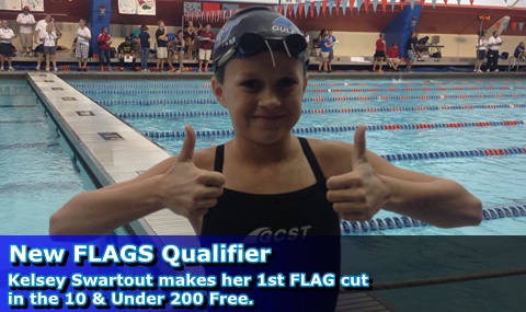 10 year old Kelsey Swartout made her 1st FLAGS qualifiying time as swam under the standard in the 10 & Under Girls 200 Free at the Gator Swim Club, Holiday Classic Swim Meet.at Gainesville, FL on Dec. 6th, 2013. Congrats to Kelsy on her new championship meet cut!